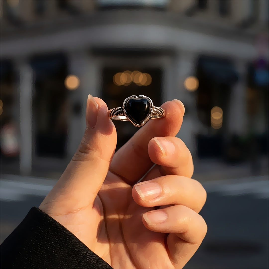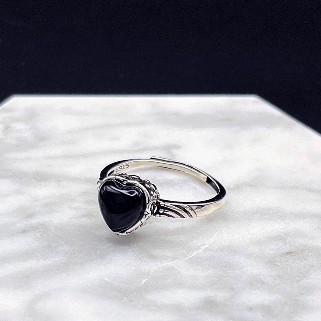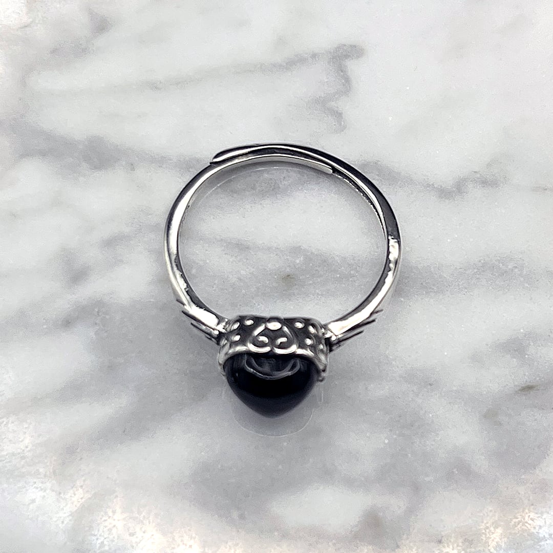 オニキス ハート リング / onyx.heart ring 【金属アレルギー対応・シルバー925・メンズ/レディース・ギフト】