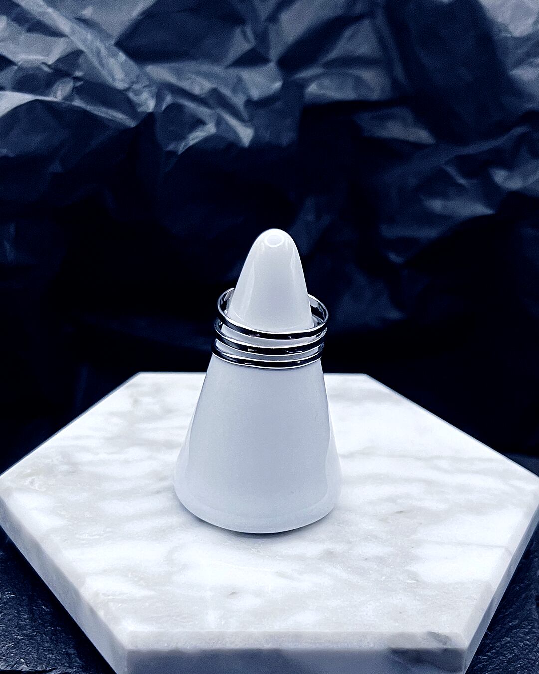 指先や耳元にシャープな印象をつくるカフリング。