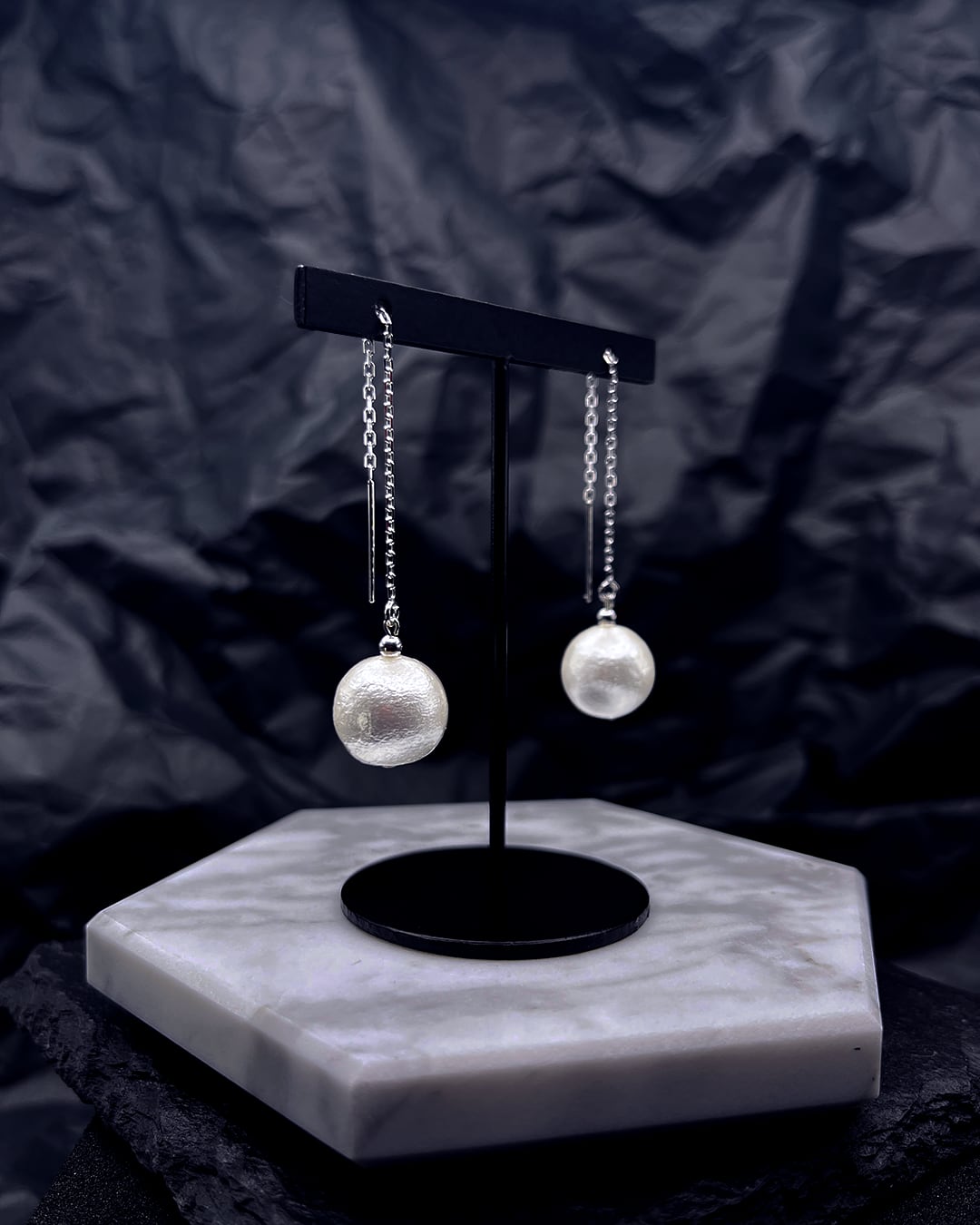 ※パールの表面に見られる凹凸や色ムラはコットンパール特有の風合いです。ハンドメイド品ならではの個性としてお楽しみください。